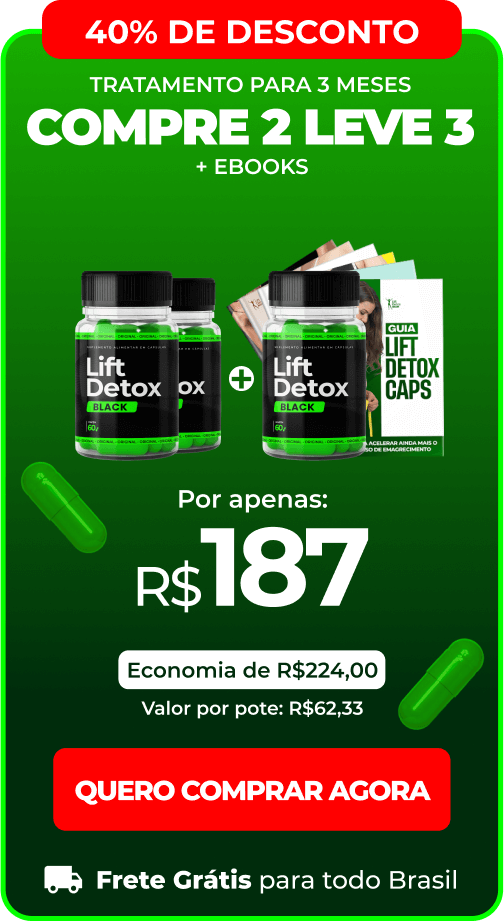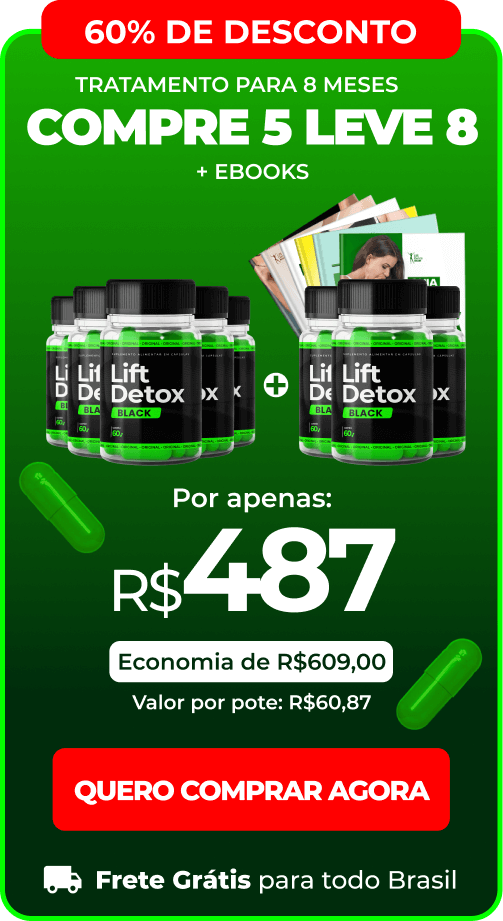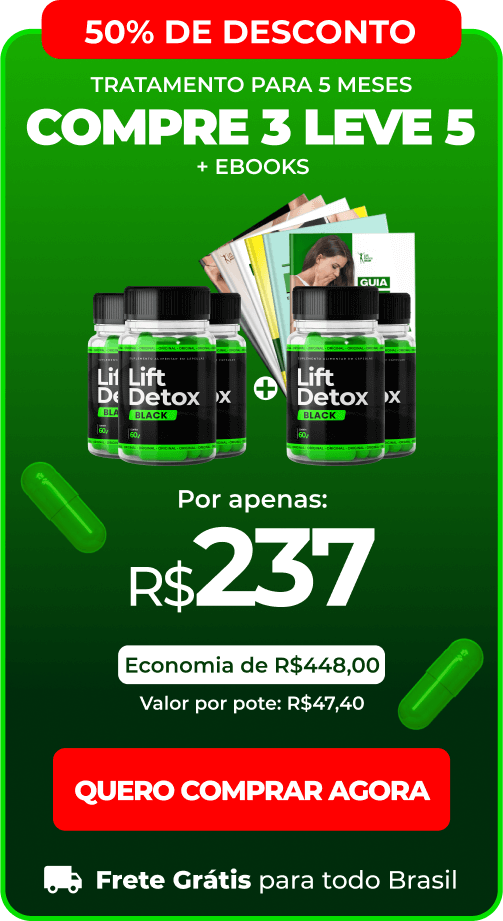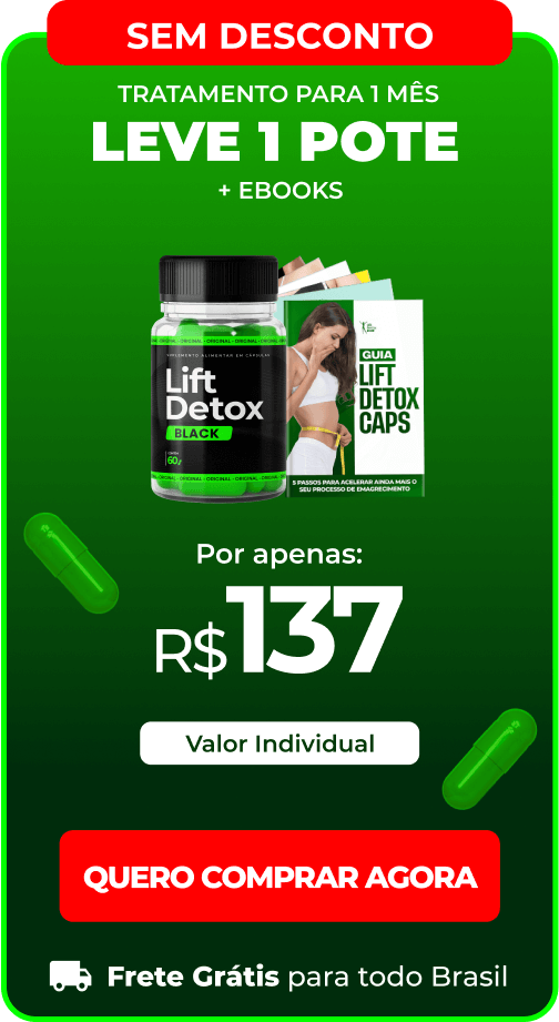 Não comercializamos o Lift Detox Black no Mercado Livre. A venda só pode ser realizada através deste Site Oficial e não nos responsabilizamos por compras realizadas em outros sites. Evite falsificações e riscos a sua saúde.